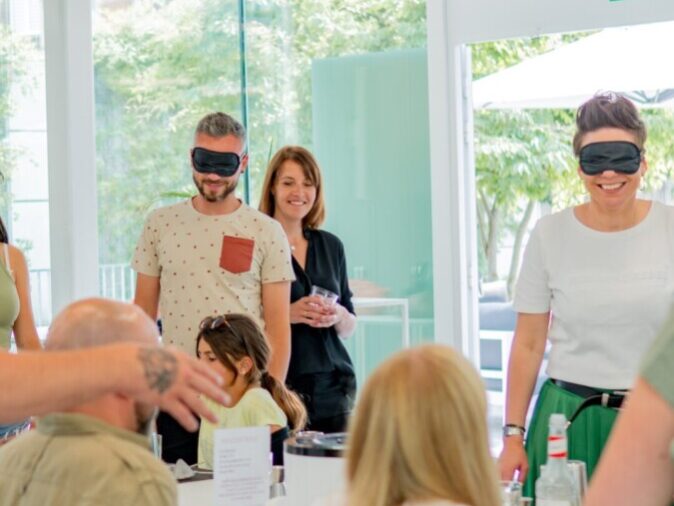 - Création de cocktail à deux l’un les yeux bandés, l’autre les mains attachées,